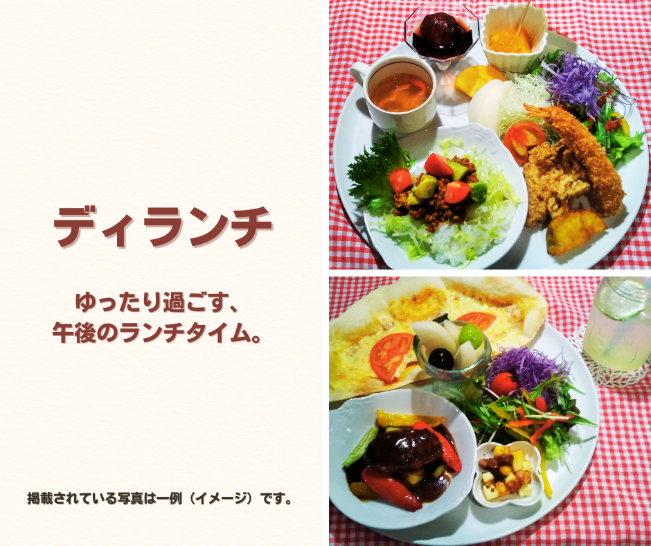 14:00から始まる遅めのランチ「ディランチ」で 、ゆったりとした午後をお過ごしください。