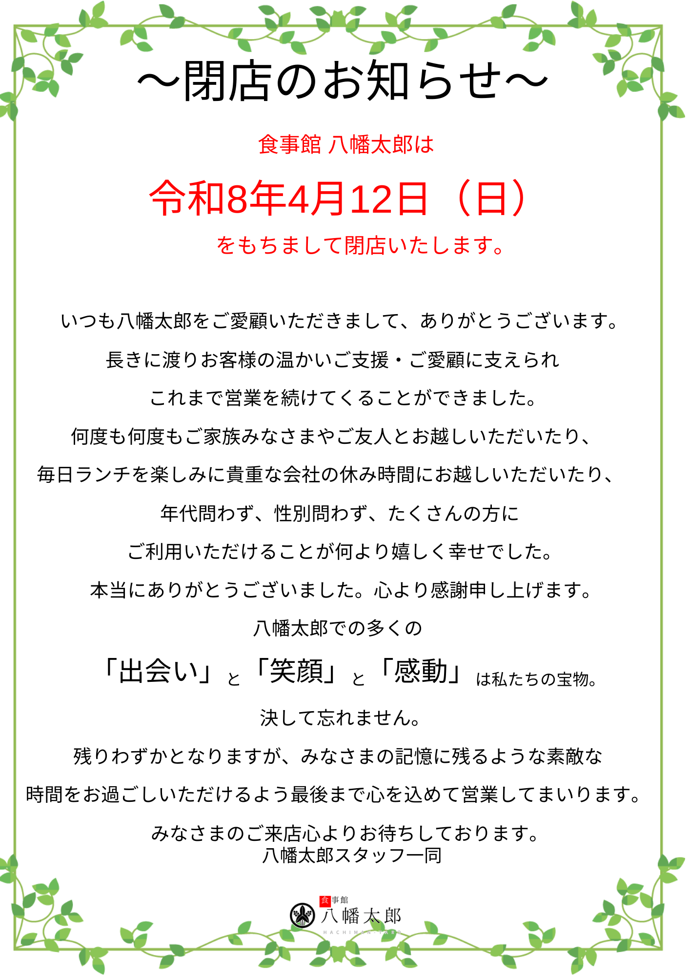 【重要】閉店のお知らせ(2026年4月12日)
